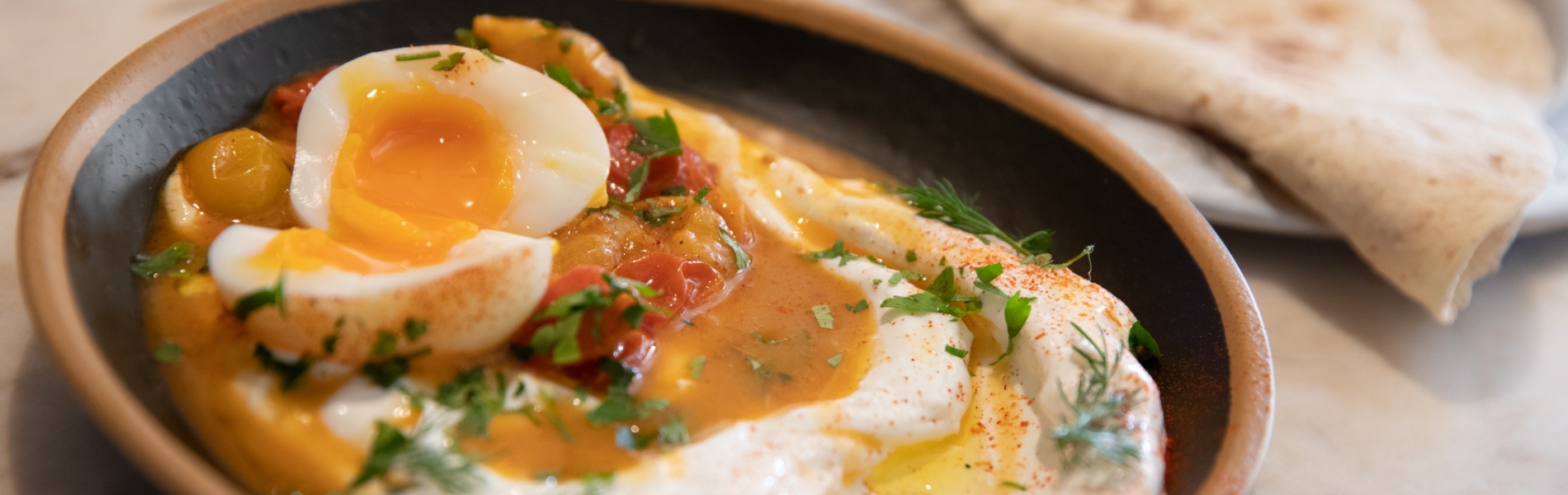 Quem chega cedo, pode pedir um dos cafés de especialidade, nas suas habituais declinações (cappuccino, flat white, americano, por aí fora), ou alguns lattes especiais da casa, como o beetroot, à base de beterraba, ou o golden, feito com uma mistura de especiarias. Há ainda alguns sumos, entre os quais se destaca o tamarind iced tea, com cardamomo, sumo de lima e xarope de tamarindo caseiro. Para comer, há ovos turcos servidos com flatbread caseiro e um já popular pequeno-almoço do Médio Oriente, composto por hummus ou labneh, abacate, ovo escalfado, salada de tomate com sumac, rúcula e ervas frescas, pickles e molho de tahini (custa €12.50).