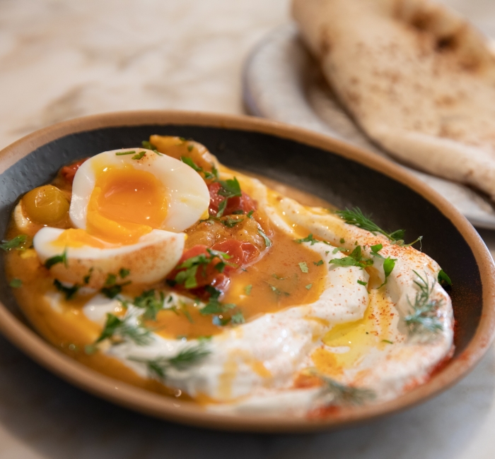 Quem chega cedo, pode pedir um dos cafés de especialidade, nas suas habituais declinações (cappuccino, flat white, americano, por aí fora), ou alguns lattes especiais da casa, como o beetroot, à base de beterraba, ou o golden, feito com uma mistura de especiarias. Há ainda alguns sumos, entre os quais se destaca o tamarind iced tea, com cardamomo, sumo de lima e xarope de tamarindo caseiro. Para comer, há ovos turcos servidos com flatbread caseiro e um já popular pequeno-almoço do Médio Oriente, composto por hummus ou labneh, abacate, ovo escalfado, salada de tomate com sumac, rúcula e ervas frescas, pickles e molho de tahini (custa €12.50).