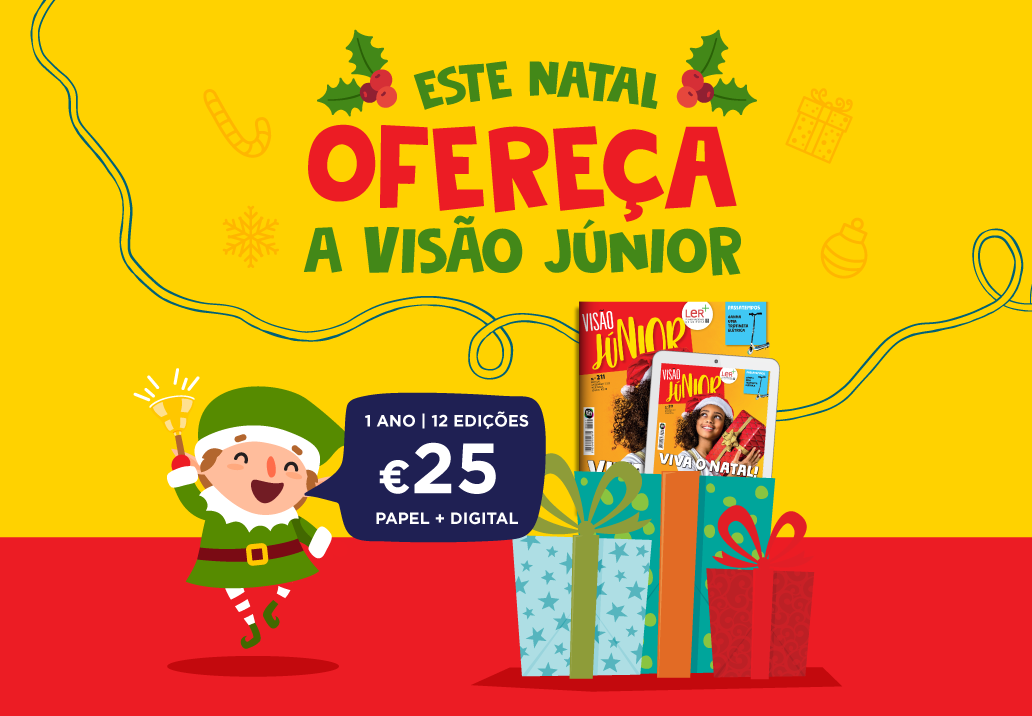 Imagine a surpresa deles a receberem a revista em casa! Por apenas 25 euros pode oferecer uma assinatura durante um ano. Ao comprar uma assinatura da Visão Júnior em papel e digital, receberá um e-mail com um divertido voucher que pode imprimir e oferecer. Por apenas €25 tem acesso a uma edição em papel e digital durante 12 meses. Imagine a surpresa dos miúdos ao receberem a revista em casa, pelo correio, com o seu próprio nome!