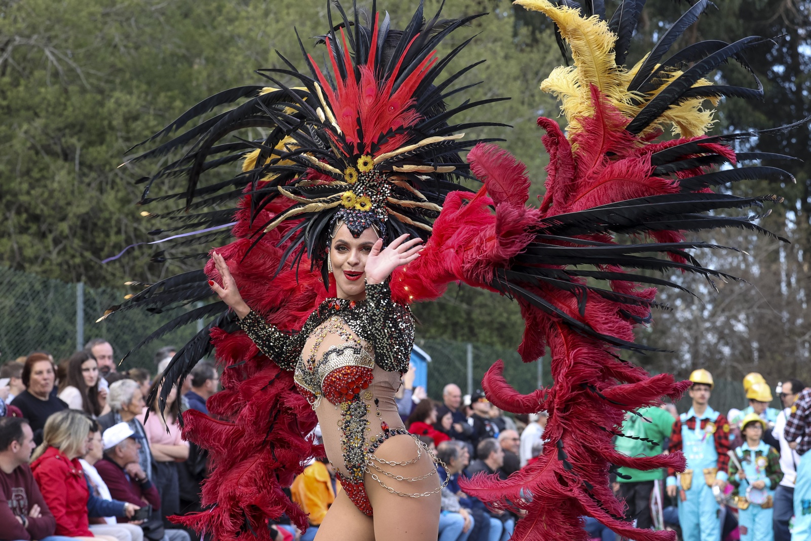 Perante uma plateia constituída por 5.000 pessoas dispostas por bancadas e 11.000 espetadores apeados, alguns dos quais fantasiados de Minions, Rainha de Copas ou Harley Quinns, o primeiro corso do Carnaval de Ovar exibe ainda grupos com máscaras como as de “Empregado do Mês”, varredores de lixo, jogadoras de basebol, piratas, dançarinos tribais e vendedores de bijuteria cubana.