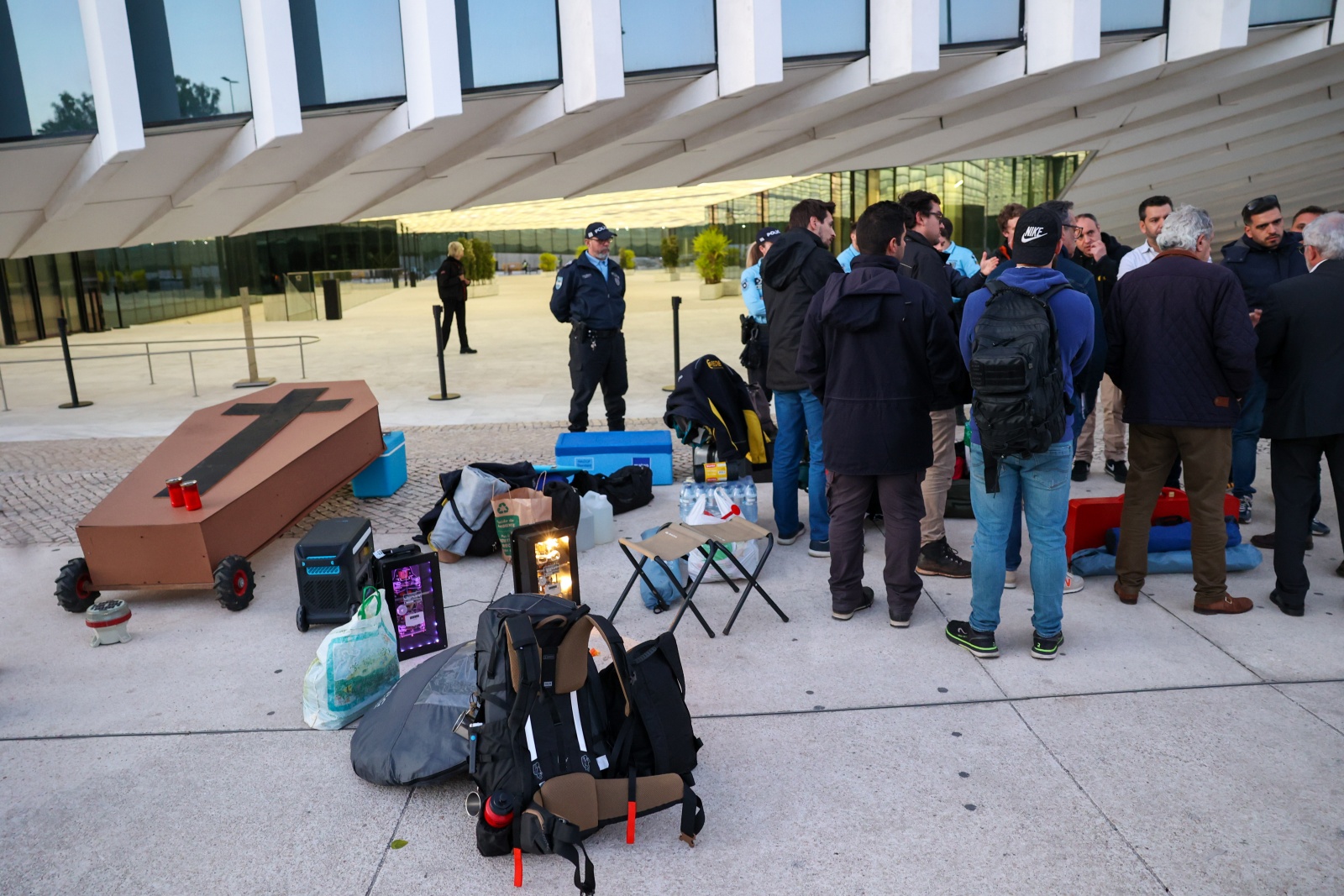 Pelas 20:00, os trabalhadores começaram a juntar-se em frente à sede da EDP, na Avenida 24 de Julho, onde instalaram algumas tendas e depositaram um caixão.