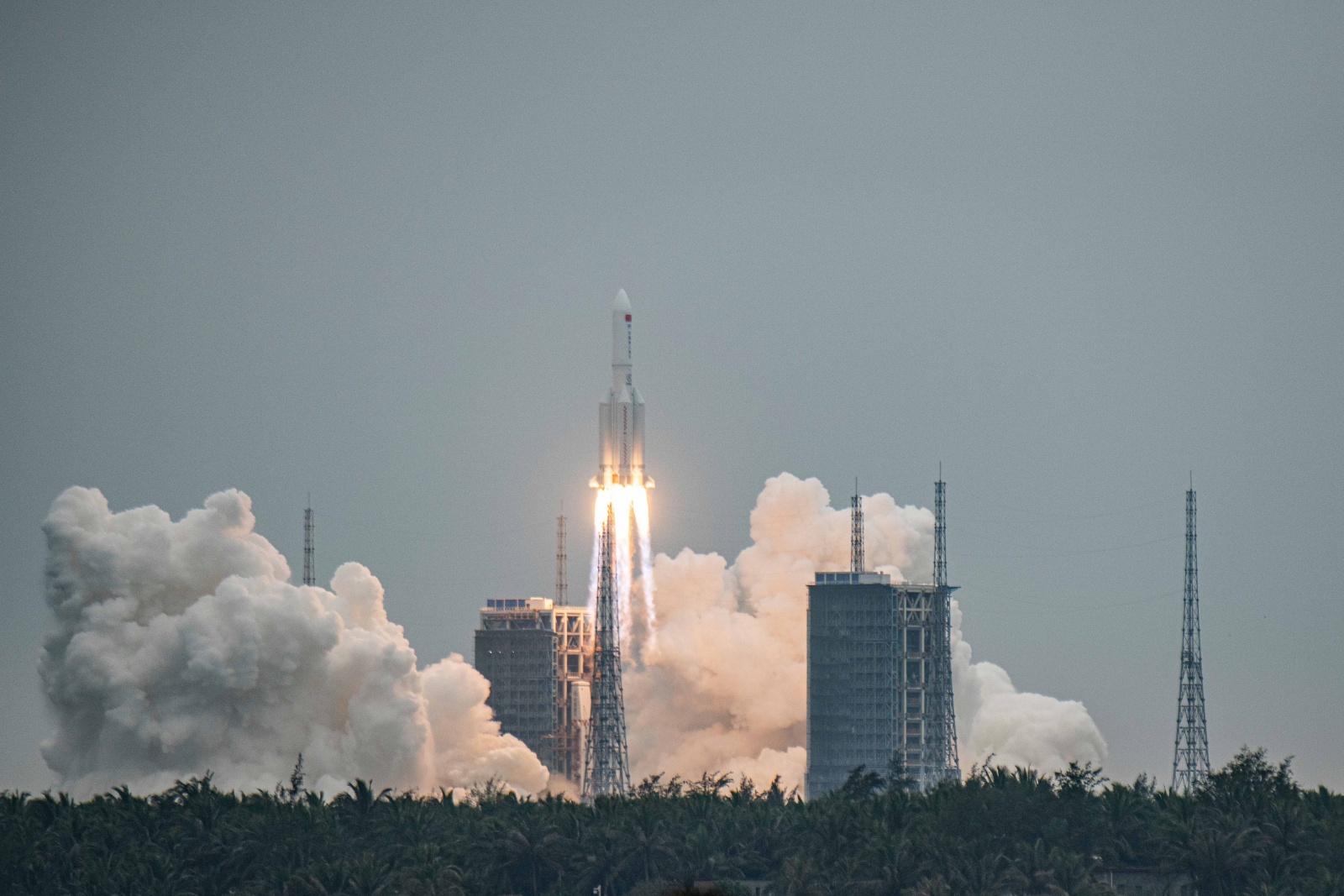 O foguetão Long March-5B foi lançado no passado domingo da ilha de Hainan para transportar um módulo da nova estação espacial chinesa.