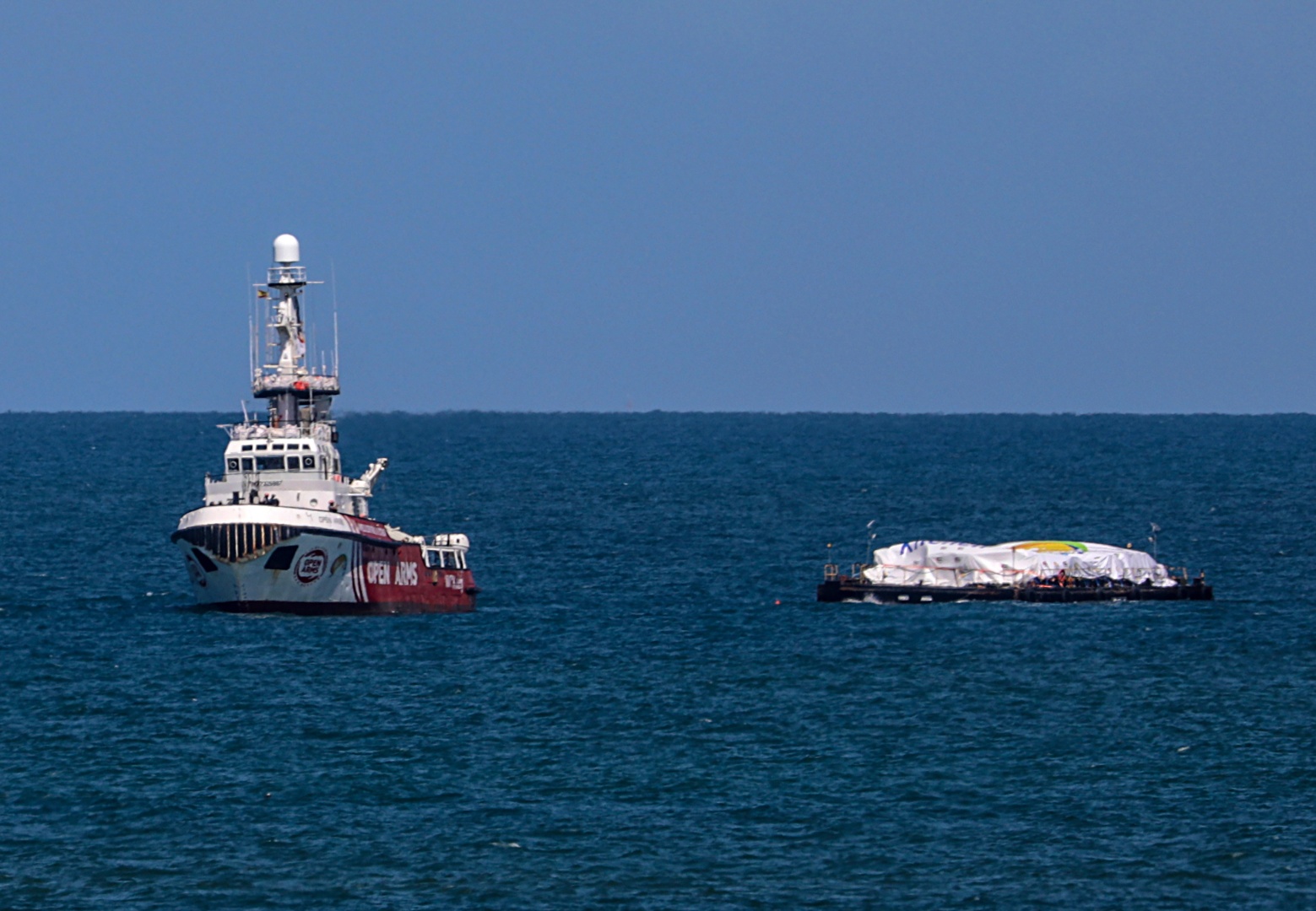 O navio de socorro “Open Arms” começou a descarregar na sexta-feira quase 200 toneladas de alimentos e água, suficientes para um milhão de refeições.