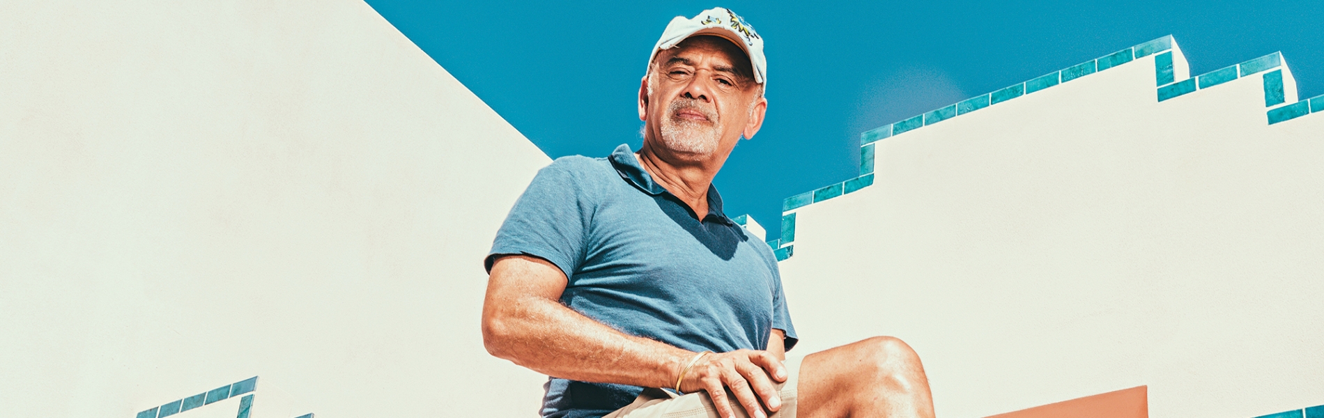 Christian Louboutin chega à esplanada do Vermelho à hora combinada, com um boné na cabeça, calções beges, polo azul e uma tote bag ao ombro – viríamos a descobrir, à mesa de almoço, que esta, além de papéis, continha quatro óculos para diferentes necessidades. Pede um café frio, comenta o estado do tempo, aceita os elogios que traçamos ao novo projeto e, sem mais delongas, explica o que o fez escolher Melides como destino de férias, onde tem casa desde 2009. O clima, o mar, a Natureza selvagem, a beleza da lagoa. É difícil não sentir o destino um pouco como seu, por serem já tantas as ideias que tem para a zona. Afinal, quem senão um aficionado por esta terra para comprar um terreno com a ideia de construir um restaurante – “gostava muito do Dinis, no Carvalhal, mas era longe para ir todos os dias e queria ter algo mais perto”, explica –, acabando, por sugestão do autarca, por abrir um grandioso hotel?