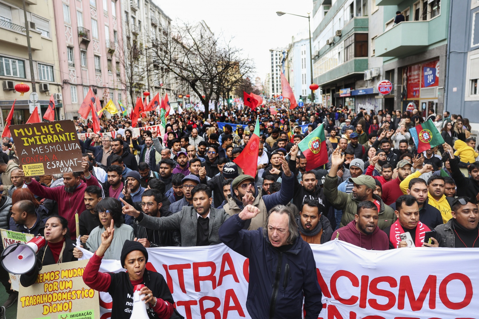 Milhares de pessoas juntaram-se esta tarde na avenida Almirante Reis, em Lisboa, para protestar contra o racismo e a ação policial no tratamento de imigrantes. A manifestação “Não nos encostem à parede” foi convocada na sequência das imagens de dezenas de imigrantes encostados às paredes dos prédios devido a uma operação policial, em dezembro do ano passado, na rua do Benformoso, perto do Martim Moniz.