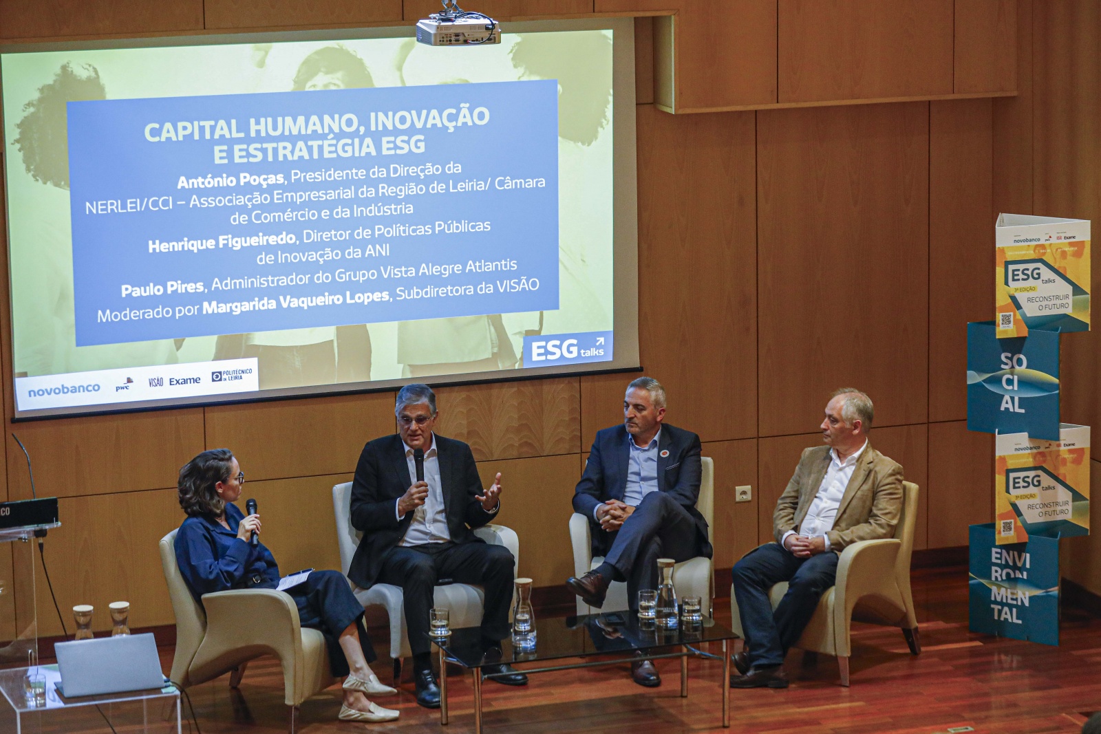 O último painel da 3ª edição da ESG Talks, em Leiria, centrou-se na discussão do tema “Capitalismo Humano, Inovação e estratégias ESG”, nos setores dos Plásticos, Moldes e Cerâmicas. Com a moderação da subdiretora da VISÃO, Margarida Vaqueiro Lopes, António Poças – Presidente da direção da Associação Empresarial da Região de Leiria/Câmara de Comércio e da Indústria – Henrique Figueiredo – Diretor da Políticas Públicas de inovação da ANI – e Paulo Pires – Administrador do Grupo Vista Alegre Atlantis – foram os convidados do último painel da iniciativa, promovida pelo novo banco, pela VISÃO e pela EXAME, em parceria com a PwC.