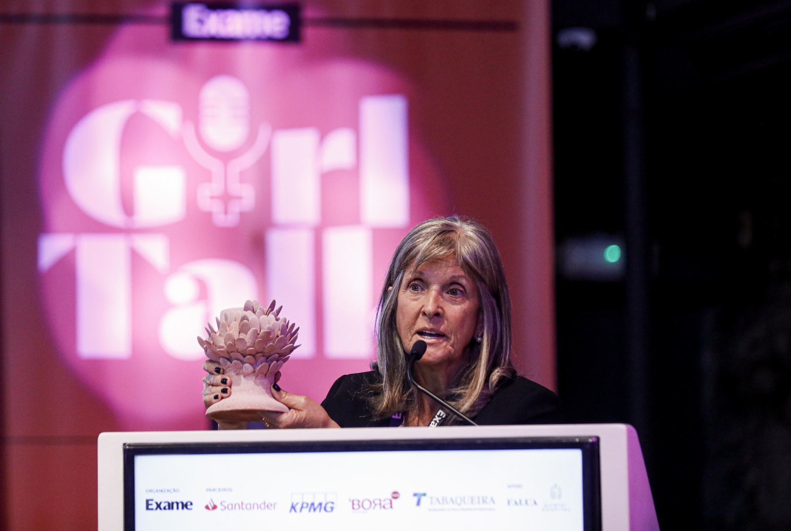 “Continua a inspirar-nos a nós, que soubemos que este prémio tinha de lhe ser entregue”, é assim que Margarida Vaqueiro Lopes, editora da EXAME entrega o prémio Girl Talk 2023 a Conceição Zagalo.