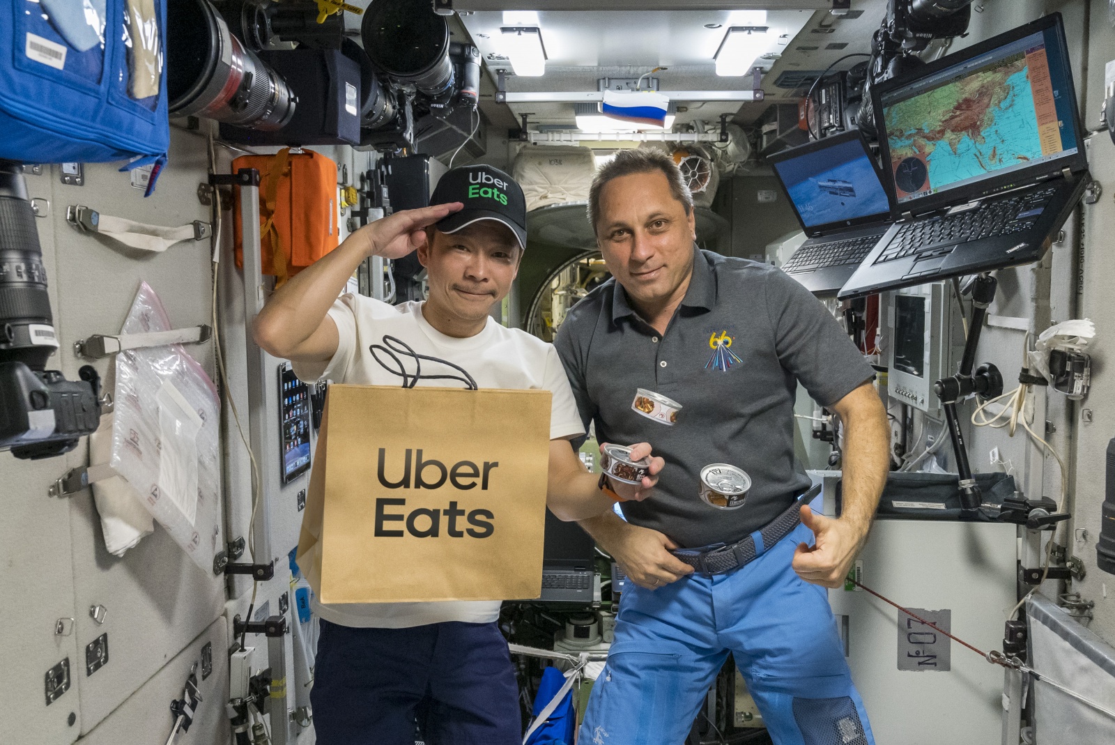 Em parceria com o empresário japonês Yusaku Maezawa, a empresa entregou iguarias japonesas aos astronautas da ISS. A bordo da nave espacial russa Soyuz, Maezawa embarcou na última quarta-feira (8), em direção à Estação Espacial, para uma missão de 12 dias e levou consigo pratos que incluíram cavala cozida com miso, carne cozida em molho agridoce, frango cozido com rebentos de bambu e carne de porco assada enviados pela Uber Eats.
