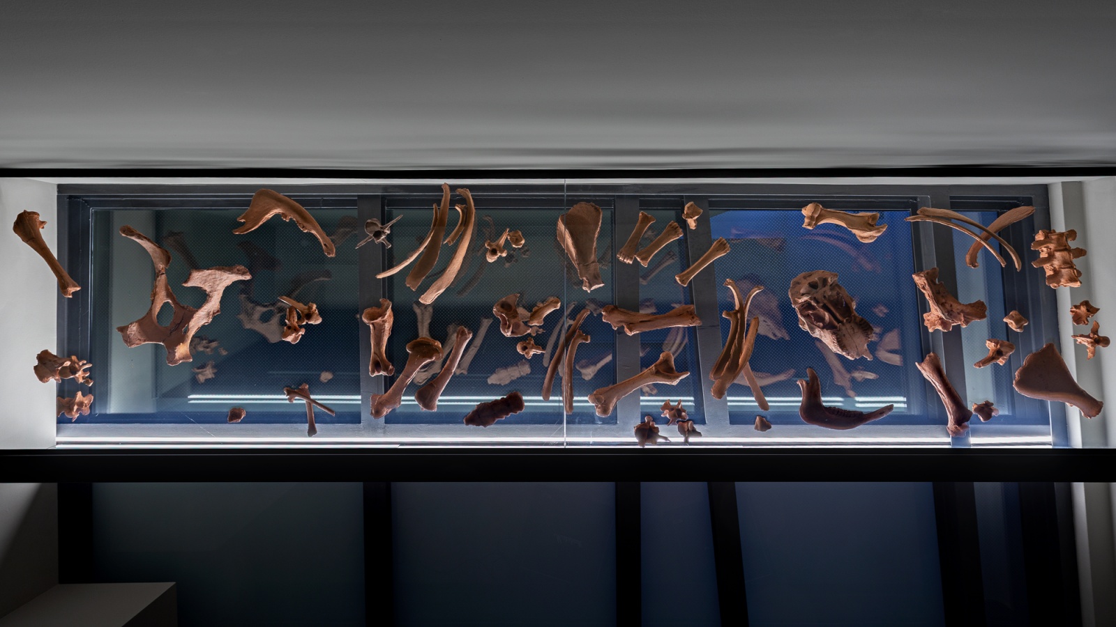 Há uma ideia de ressurreição, pois fiz 59 moldes dos ossos e enchi-os com terra do sítio onde os encontrei, ou seja, desenterrei-os na forma da própria terra que os tinha engolido originalmente