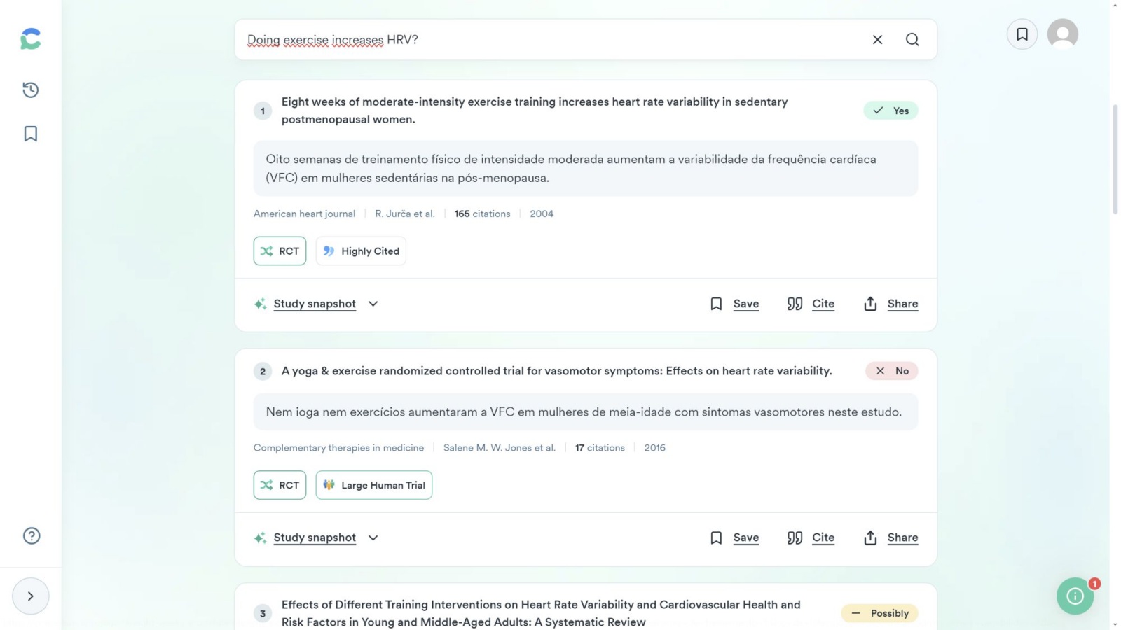 Destinada a pessoas que estão a frequentar o ensino superior, é, tal como a empresa o define, uma combinação entre as plataformas Google Scholar (de estudos académicos) e o ChatGPT. Na prática permite que pesquisemos, usando linguagem natural, uma gigantesca base de dados com estudos científicos. É possível definir o português como língua de pesquisa, mas segundo as nossas experiências usar o inglês é a melhor forma de usar o Consensus. Tem duas mais-valias: apresenta, logo no topo, um resumo sobre o ‘consenso’ dos estudos sobre esse tópico, apresentando também estatísticas (80% dos estudos dizem que sim, 20% dizem que não, por exemplo); e há um assistente que resume de imediato algumas das principais conclusões do estudo, sendo por isso um bom ponto de partida para o desenvolvimento de trabalhos mais aprofundados.