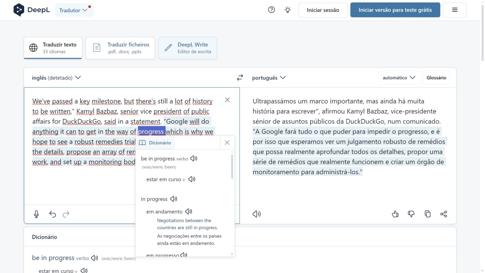 O mundo está, definitivamente, mais global e isto significa que muita da informação que pode ser útil num determinado processo de estudo só está disponível noutro idioma ou que é necessário apresentar um trabalho noutro idioma. Tradutores online há muitos, mas o Deepl é um dos que incorpora melhor a Inteligência Artificial para que as traduções não sejam feitas de forma literal, mas tenham em conta também o contexto (o que é relevante para garantir precisão nos trabalhos). Tem também uma opção que permite traduzir documentos inteiros.