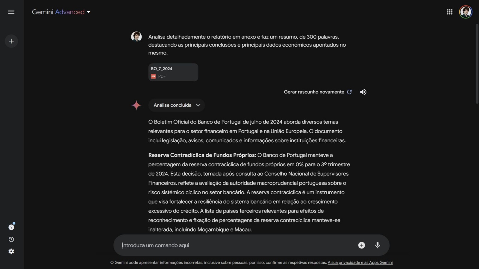 É outro dos poderes ‘secretos’ dos principais assistentes de IA. Conseguem analisar e resumir, em segundos, documentos de várias páginas, destacando aquelas que são as ideias e os números principais. “Analisa detalhadamente o relatório em anexo e faz um resumo, de 300 palavras, destacando as principais conclusões e principais dados económicos apontados no mesmo” foi a instrução que usámos num relatório do Banco de Portugal de junho de 2024 (que comparamos com notícias publicadas sobre o mesmo) – o resumo feito pelo sistema de IA destacou grande parte da informação relevante. Depois pode fazer questões de seguimento. Por exemplo: “Há dados específicos sobre [inserir tema] neste relatório?” que o ajudará a encontrar a informação que mais precisa.