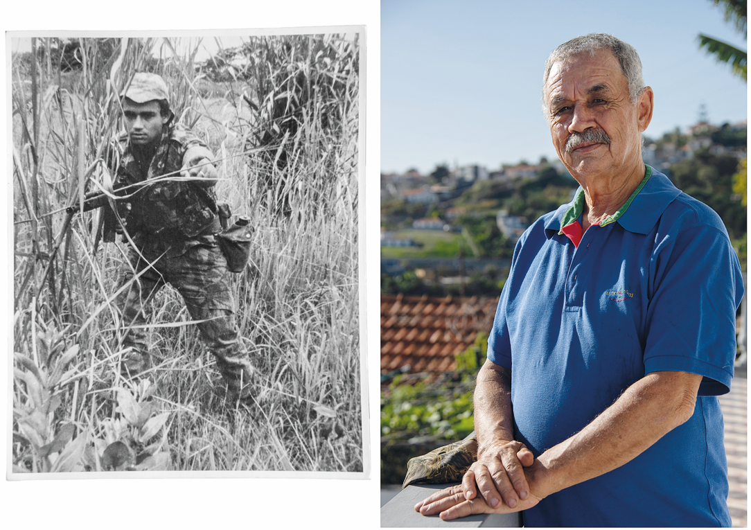 “Ensinaram-nos a disparar uma arma e pouco mais. No início, sentia muito medo cada vez que saíamos do quartel para o mato”, conta João Romão, natural da ilha da Madeira. “Chegámos à Madeira a 31 de dezembro de 1971, de noite. O barco parou ao largo e vimos o fogo de artifício a bordo, antes de atracar.”
