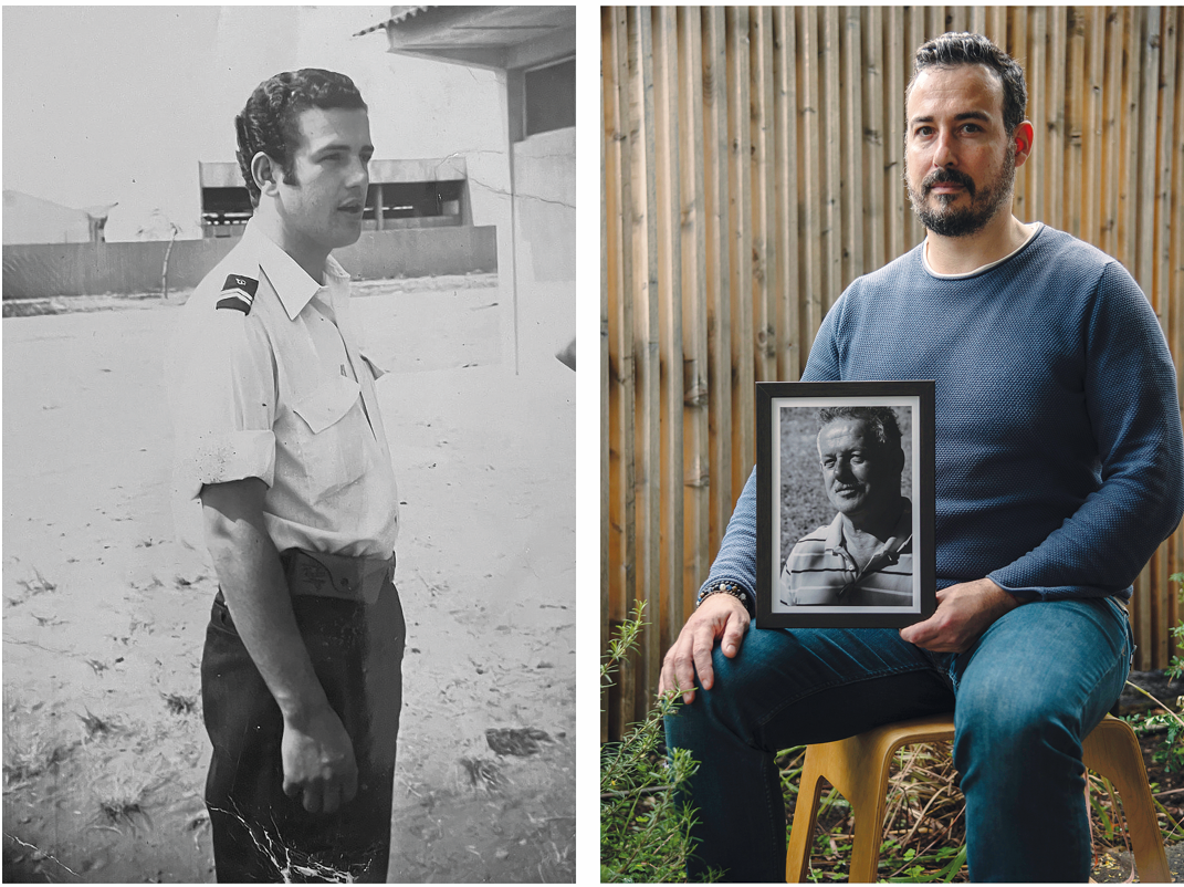 Leonardo Pereira (1951-2016), pai da fotógrafa, serviu na Força Aérea Portuguesa como especialista e mecânico de aeronaves. Cumpriu seis anos de serviço militar e regressou depois do 25 de Abril de 1974. Aqui, vemos António Jorge Pereira com a foto do seu falecido pai. “A única história que me lembro de ouvir foi de ter aterrado um avião com bombas a bordo e sem trem de aterragem”, conta o filho.