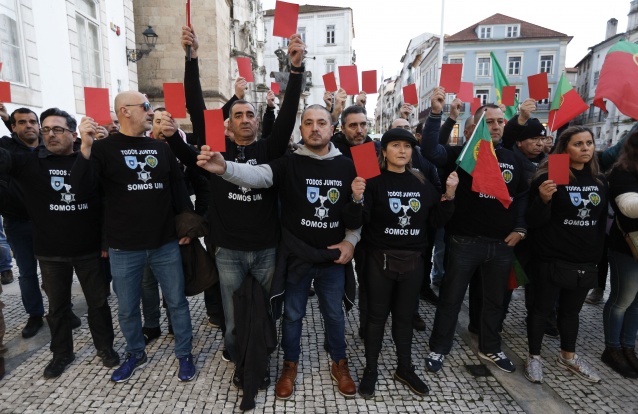 Agentes da PSP, GNR e da guarda prisional mostraram hoje um cartão vermelho ao secretário-geral do PS em Coimbra, com Pedro Nuno Santos a prometer negociar com eles para que "se sintam bem a trabalhar em Portugal"
