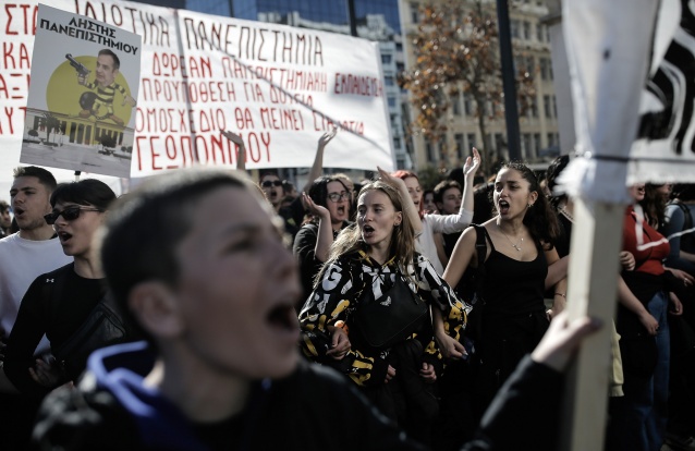 Pela quarta semana consecutiva, cerca de 15.000 estudantes e professores, segundo a polícia, manifestaram-se hoje em Atenas contra um projeto do Governo conservador que prevê a equivalência dos diplomas de ensino superior privado aos emitidos pelas universidades públicas