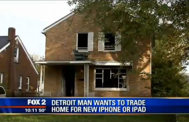 Em Detroit, EUA, oferece-se uma casa em troca do novo iPhone. O proprietário não consegue vender a vivenda e propõe-se a aceitar o iPhone 6 ou um iPad como pagamento. Ainda não apareceram interessados.