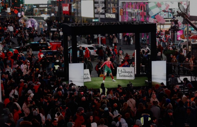 Os anúncios de marcas nos ecrãs gigantes de Times Square foram temporariamente substituídos por imagens de Portugal, instantes depois de ser revelada, em plena praça, a versão de cera de Cristiano Ronaldo, que, em seguida, tomou o seu lugar no Madame Tussauds. A VISÃO, em forma de dois repórteres congelados, esteve lá e conta-lhe como foi… e o que vai ser