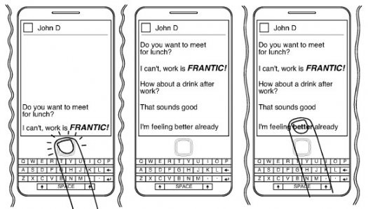 A RIM, empresa que gere a marca Blackberry, patenteou uma tecnologia que transmite as emoções com que alguém escreve um SMS ou um e-mail.
