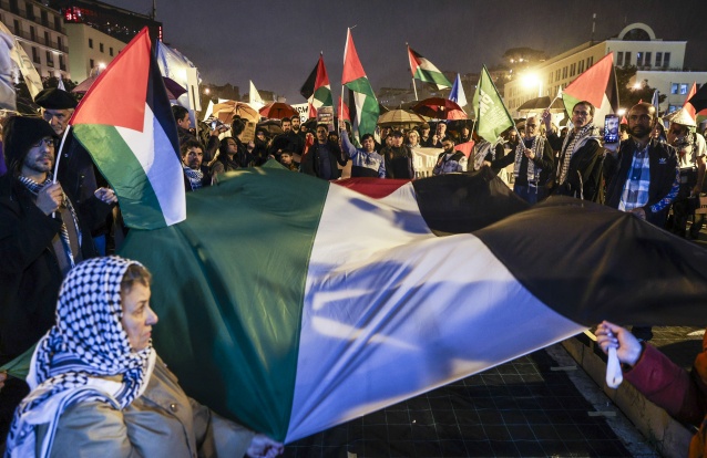 Centenas de pessoas formaram hoje no centro de Lisboa um amplo quadrado numa manifestação de solidariedade com a Palestina que incluiu representação, música, discursos e palavras de ordem, na presença dos dirigentes do PCP e do BE