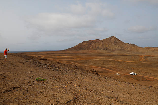 Um caminho pelo deserto assim se atinge a Buracona, uma piscina formada no meio das rochas escuras e onde sabe bem tomar banho, mesmo em dias de muito vento. Qualquer que seja o meio de transporte, os saltos causados pelos buracos da estrada de terra batida são inevitáveis nesta longa viagem, onde até temos direito a miragens. Para-se na Suvenir Mirage (assim mesmo), uma cabana repleta de artesanato cabo-verdiano, gerida por Emanuel. Do nada, aparecem os franzinos Elvis e Delvis, de 13 e 8 anos. Dizem que andam na escola, mas custa a acreditar quando se olha para os pés dos irmãos, cinzentos do pó. “Pedimos para comprar sapatos”, diz o mais velho, acabando por confessar que consegue 700 escudos (para fazer o câmbio, basta tirar dois zeros) por dia com este tipo de argumento. Quando se chega à Buracona perto do meio-dia, é possível ver o “olho azul” nada mais do que o sol a incidir na escuridão de uma gruta dando-lhe essa tonalidade. Nota: Levar bom calçado para andar pelas rochas vulcânicas.