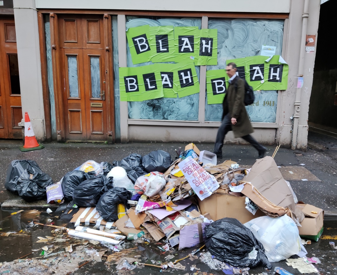 Quando fotografei o monte de lixo, numa rua do centro de Glasgow a poucas centenas de metros da COP26, a primeira coisa de que me lembrei foi de dois estudos relativamente recentes, baseados em inquéritos, que demonstravam que as pessoas que praticam pequenos gestos em prol do ambiente estão menos dispostas do que quem não faz nada a pagar impostos ambientais – medidas com um impacto positivo incomparavelmente maior, para reduzir as emissões de gases com efeito de estufa. A ideia é: “Eu já faço a minha (pequena) parte, os outros que paguem.”