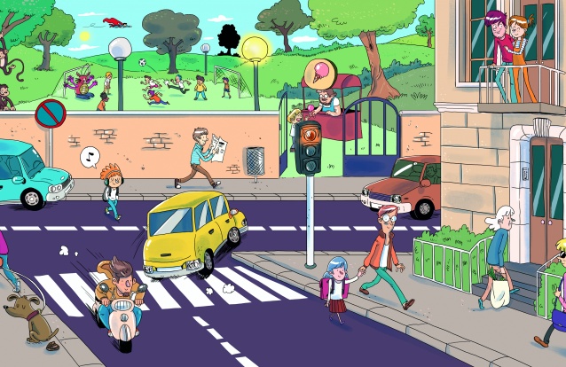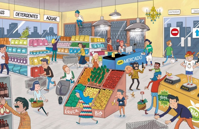 O que há de estranho, de fora do normal, neste desenho? Não procures só figuras malucas, mas sobretudo situações estranhas pessoas … São 10 erros. Quando achares que os descobriste, vai ver as soluções, onde encontras também uma explicação para cada um deles.