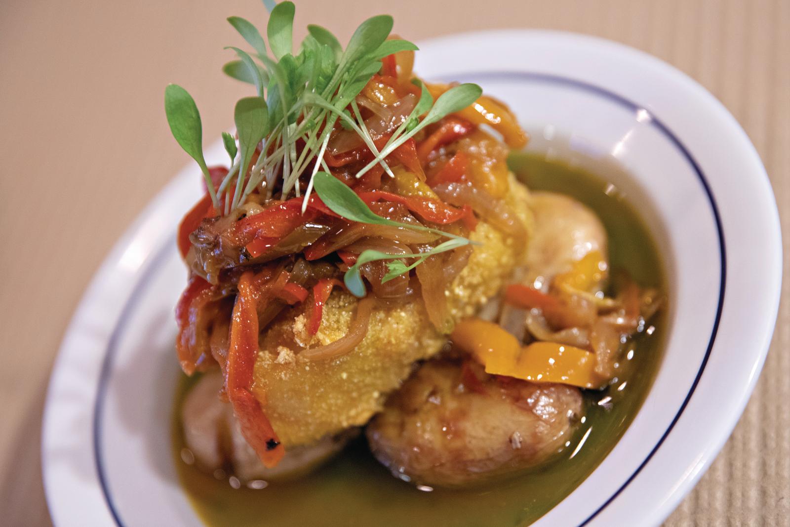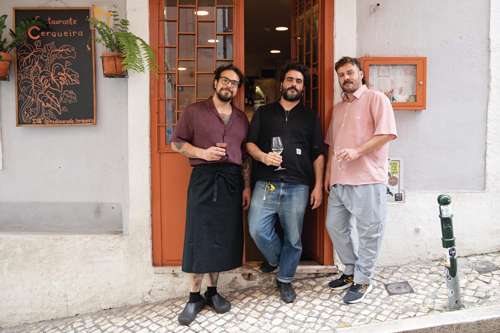 Desde junho do ano passado, a carta do Cerqueira exibe a cumplicidade existente entre gastronomia portuguesa e brasileira, com forte influência da comida mineira. Por exemplo: pastel de moela (€3,50), croquete de língua (€3,50), língua à vinagrete (€6), moela de pato (€8,50), rabo de boi com puré de aipo (€19), aba estufada com batata e kale (€16), bacalhau à minhota (€17), costeleta de porco preto com canjica cremosa e farofa com bacon (€19). “Queremos ser um restaurante local”, define Diogo, em que cada pessoa gaste em média 20 euros.