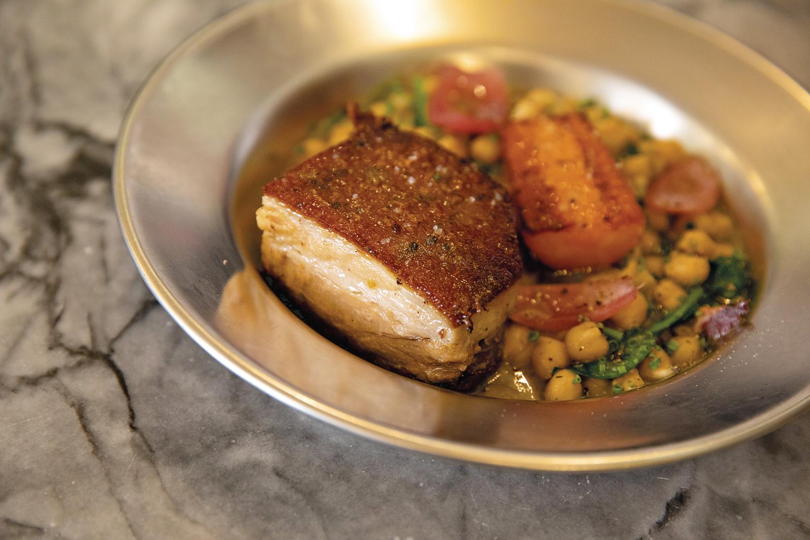 Desde junho do ano passado, a carta do Cerqueira exibe a cumplicidade existente entre gastronomia portuguesa e brasileira, com forte influência da comida mineira. Por exemplo: pastel de moela (€3,50), croquete de língua (€3,50), língua à vinagrete (€6), moela de pato (€8,50), rabo de boi com puré de aipo (€19), aba estufada com batata e kale (€16), bacalhau à minhota (€17), costeleta de porco preto com canjica cremosa e farofa com bacon (€19). “Queremos ser um restaurante local”, define Diogo, em que cada pessoa gaste em média 20 euros.