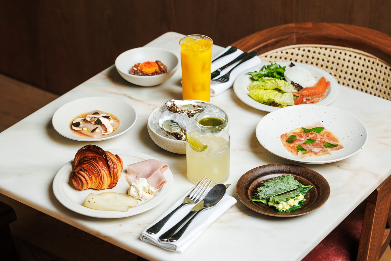 A ideia, já se sabe, é aproveitar tudo isto sem pressas. Provámos, por exemplo, a barriga de atum curada, com caldo de refogado e azeite novo, os ovos florentine, espinafres e molho holandês, o frango frito com leitelho (um claro vencedor) e as farófias com creme inglês cítrico e canela.