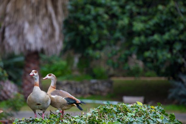 Reparamos nos patos mudos que se nos atravessam no caminho, especialmente nos dois pequeninos que seguem a mãe em passadas ainda descoordenadas. Reparamos neles porque são muitos (reproduzem-se que nem coelhos, explicam-nos), mas também gostamos de ver as famílias de gansos e os pavões, claro, que dão sempre espetáculo quando decidem exibir-se. Entretanto, olhamos para o céu na esperança de avistar algum exemplar de garça-real, guarda-rios, estorninho ou gralha, espécies que, garantem-nos, esvoaçam por aqui. Mas desistimos, porque percebemos que o ruído das máquinas, que dão os retoques de última hora no Jardim Botânico Tropical, na véspera da sua reabertura ao público, há de mandá-los para outras paragens. E terá sido assim durante o último ano. Agora, que estas intervenções acabaram, já devem estar a aproveitar-se das sombras das árvores e dos seus galhos para fazerem ninhos – afinal, há por aqui cerca de 600 espécies tropicais e subtropicais, de mais de uma centena de famílias de todo o mundo, em sete hectares de terreno. Note-se que 16 dessas espécies estão em risco (sete “ameaçadas” e nove “vulneráveis”).